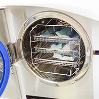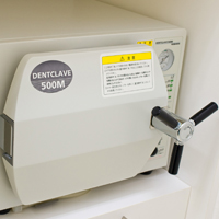 | 菌の芽胞まで死滅させることのできる、オートクレーブです。診療で使うピンセットやミラーなど、一人の患者様に使い終わったら、すべてオートクレーブで滅菌いたします。 最高レベルのクラスBオートクレーブ(高圧蒸気滅菌器)を使用しています。 | |