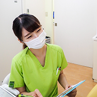 3. | 診察室で、問診票に基づいて痛みのある歯の場所などと、お体の健康状態について、お聞きいたします。歯科治療が苦手な方は、遠慮なくお申し出くださいね。 |