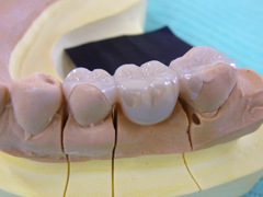 - 模型をつくり、その上で、詰め物をセラミックスでつくります